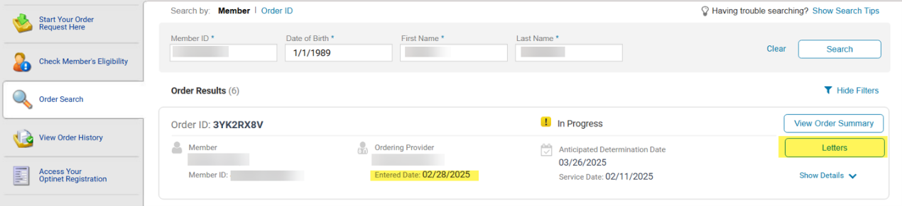 For Sleep and Additional Outpatient UM cases created on or after March 1, 2025, portal users will now click on the View Order Summary button to access and view letters: